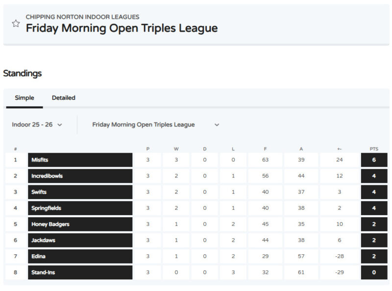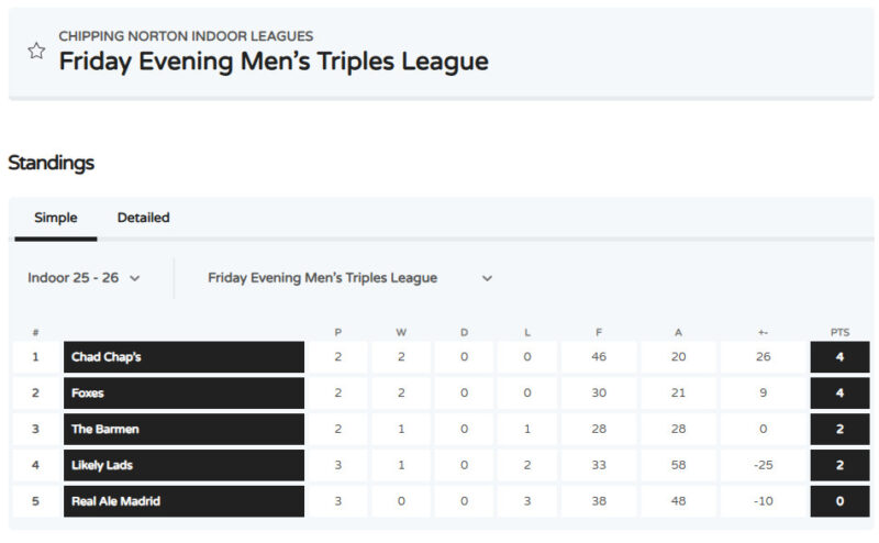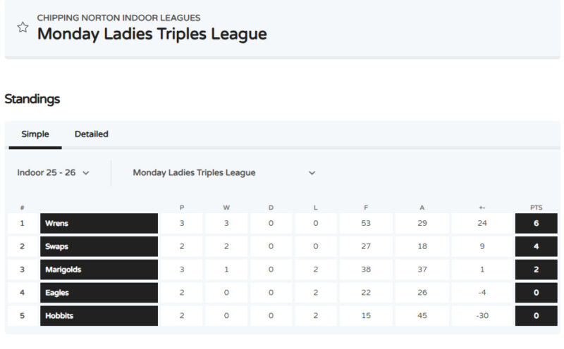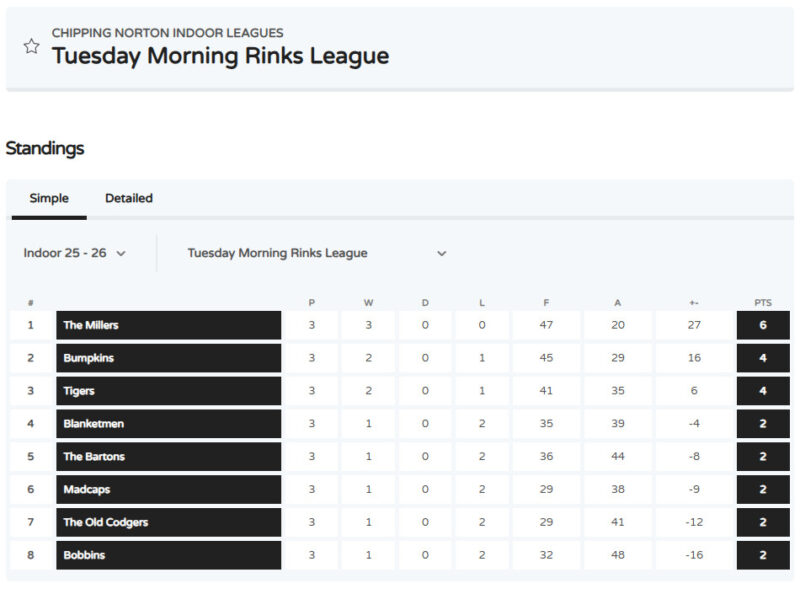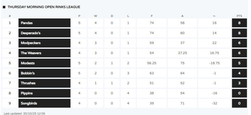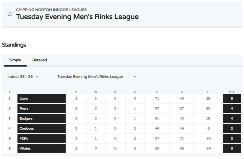 INTERNAL LEAGUES & LEAGUE POSITIONS 2025/2026