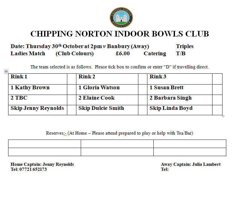 Please see below the team selection for upcoming games: